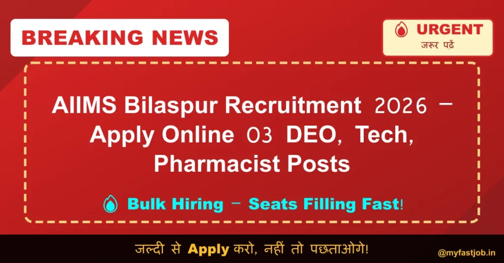 The All India Institute of Medical Sciences Bilaspur has released the official notification for the recruitment of Pharmacist / Nursing Officer, Technician and Data Entry Operator posts. Eligible candidates can apply online from 09 January 2026 to 29 January 2026 through the official website aiimsbilaspur.edu.in.