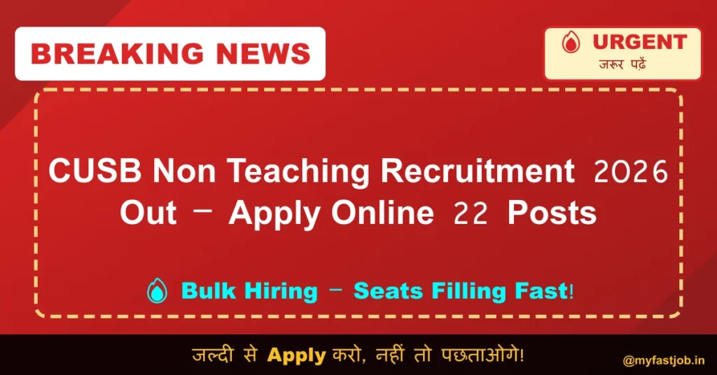 The Central University of South Bihar (CUSB) has released the official notification for Non Teaching Recruitment 2026. A total of 22 vacancies are announced for various posts including Internal Audit Officer, Medical Officer, Assistant, LDC, MTS and other non-teaching positions. Eligible candidates can apply online by 15 January 2026 (06:00 PM) through the official website www.cusb.ac.in.