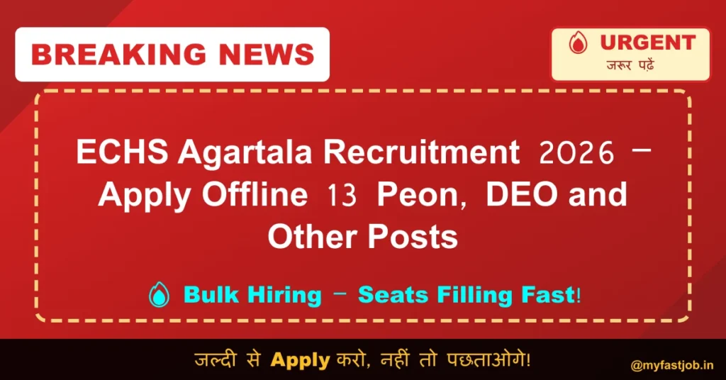 The Ex Servicemen Contributory Health Scheme (ECHS), Agartala has released the official notification for the recruitment of Peon, DEO and Other Various Posts. Eligible candidates can apply offline through the official website from Notification Release Date to 14 February 2026.