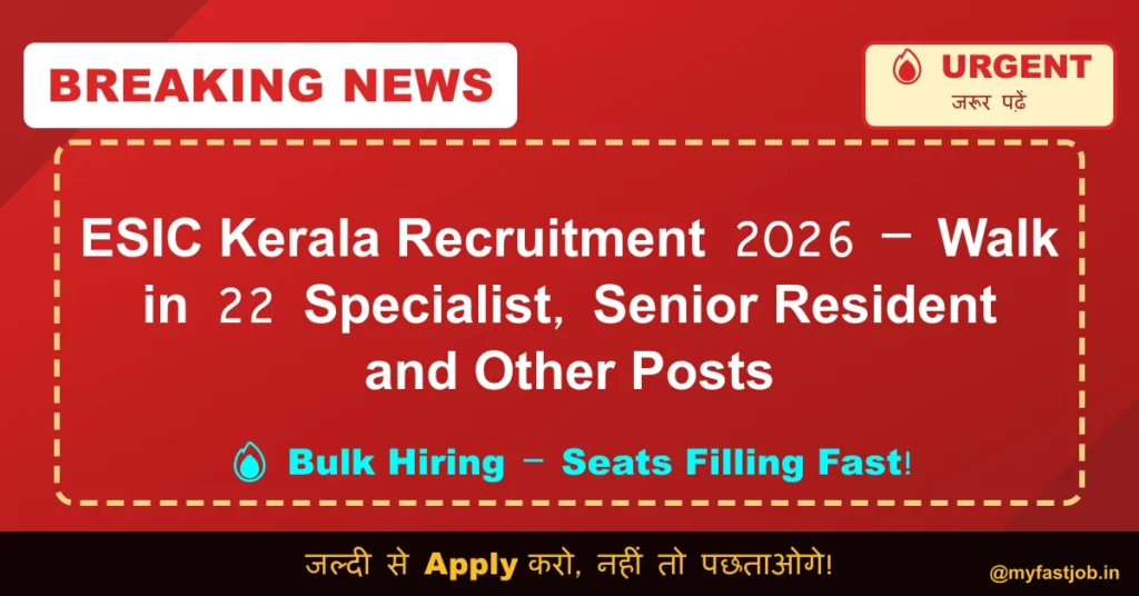The Employees’ State Insurance Corporation Model and Super Specialty Hospital, Asramam (ESIC Kerala) has released the official notification for the recruitment of Super Specialist, Specialist (Full Time/Part Time) and Senior Resident posts. A total of 22 vacancies are available. Eligible candidates with required medical qualifications can attend the Walk-in Interview on 07 January 2026 at Kollam, Kerala.