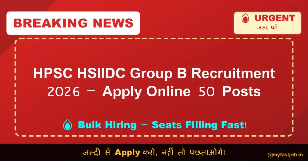 The Haryana State Industrial and Infrastructure Development Corporation (HSIIDC) has released the official notification for the recruitment of Various Group B Posts through HPSC HSIIDC Recruitment 2026. Eligible candidates having B.Tech/B.E, MBA, CA, ICWA, MCA, LLB or equivalent qualifications can apply online from 15 January 2026 to 16 February 2026 through the official website hpsc.gov.in.