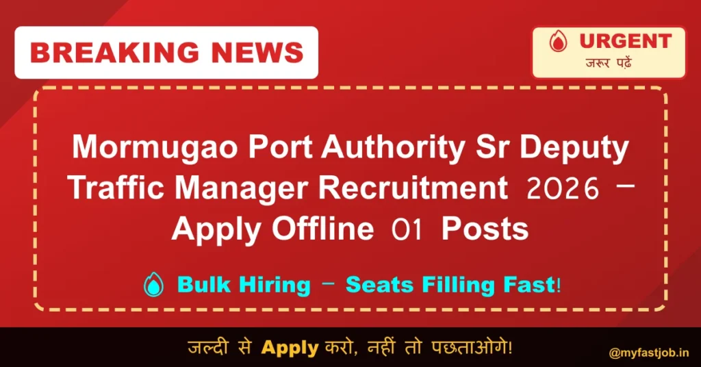 Mormugao Port Authority has released the official notification for filling up the post of Senior Deputy Traffic Manager in the pay scale of ₹80,000 – ₹2,20,000 by absorption through composite method from eligible officers of Major Port Authorities. Interested and eligible candidates can apply online through the Ministry of Ports, Shipping & Waterways Online Application Portal (OAP) from 24 December 2025 to 23 January 2026.