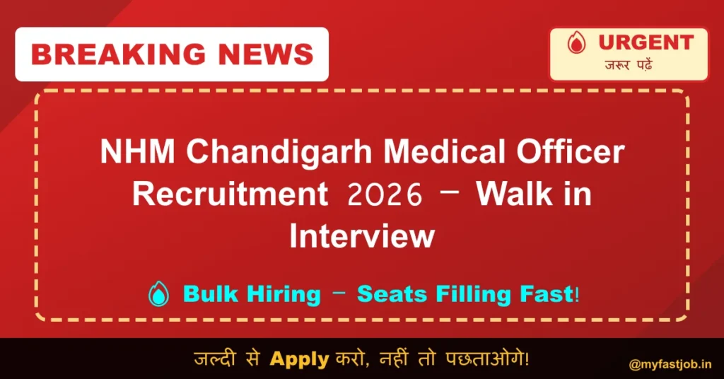 The National Health Mission (NHM), Chandigarh, under the Health & Family Welfare Department, has released an official public notice for the recruitment of Medical Officers on a contractual basis under NHM and PM Ayushman Bharat Health Infrastructure Mission (PM-ABHIM). A total of 07 posts are available. Eligible MBBS candidates can appear for a Walk-In-Interview on 15 January 2026 at Chandigarh.