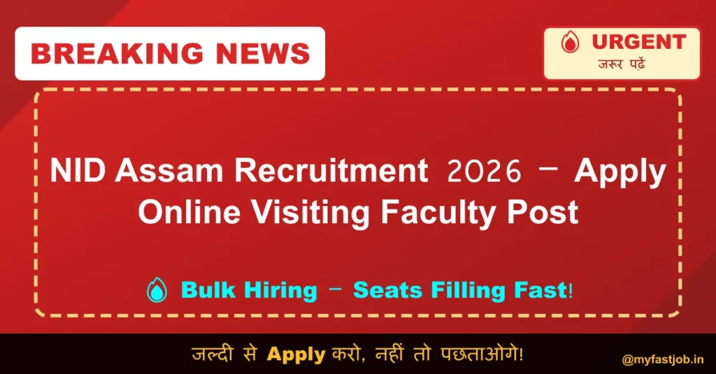The National Institute of Design Assam (NID Assam) has released an official notification for the recruitment of Visiting Faculty posts. Eligible candidates can apply online from 20 December 2025 to 20 January 2026 through the official website nidj.ac.in.