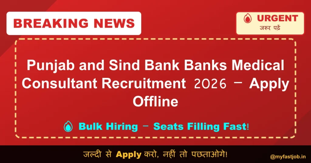 The Punjab and Sind Bank has released the official notification for the recruitment of Bank’s Medical Consultant posts on a contractual basis at Zonal Office Gurgaon. Eligible candidates having MBBS, BHMS, or MD qualifications can apply through offline mode. The last date to submit the offline application form is 12 February 2026 through the official website punjabandsind.bank.in.