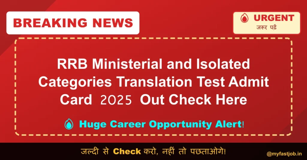 The Railway Recruitment Boards (RRBs) have released the RRB Ministerial and Isolated Categories Junior Translator (Hindi) Translation Test Admit Card 2025 on 24 December 2025. Shortlisted candidates under CEN 07/2024 can download their admit card from their respective regional RRB websites. The Translation Test (Computer Based) will be conducted on 28 December 2025 across multiple exam centers. This Admit Card is compulsory for appearing in the exam.