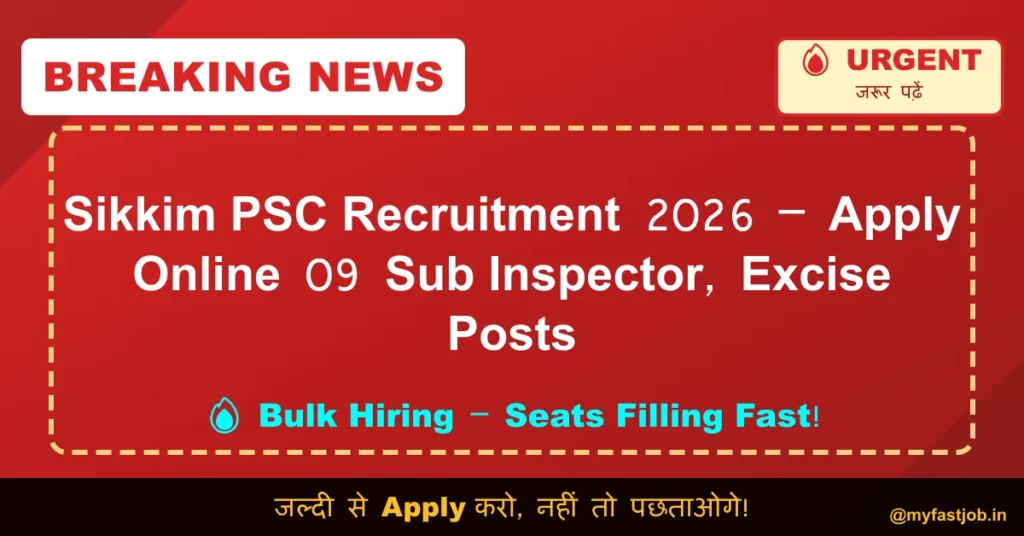 Sikkim PSC Recruitment 2026 – Apply Online 09 Sub Inspector, Excise Posts