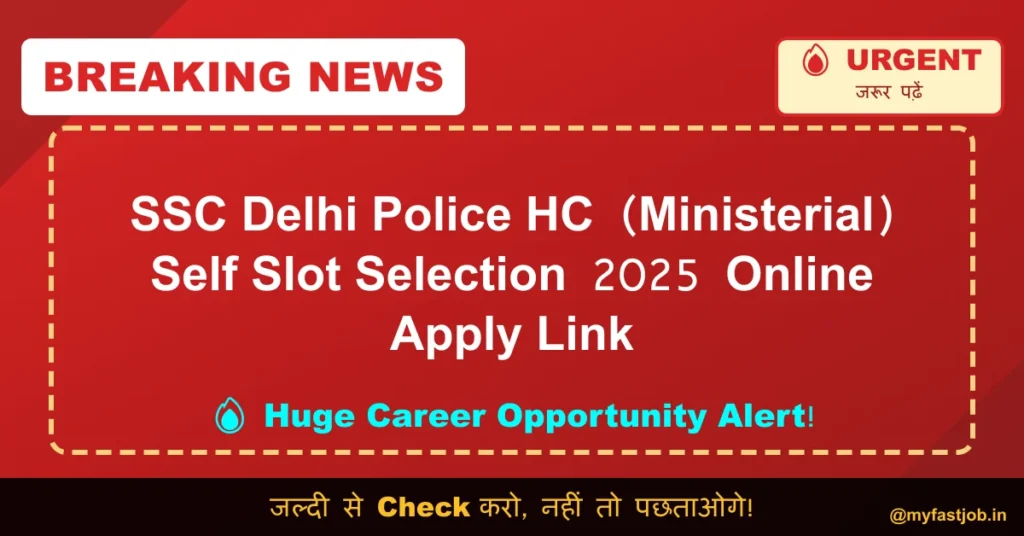 The Staff Selection Commission (SSC) has released the Self Slot Selection Notice for the recruitment of Delhi Police Head Constable (Ministerial) Examination 2025. The online application process was held from 29 September 2025 to 20 October 2025. The examination will be conducted from 07 to 12 January 2026. Candidates can check Exam City / Admit Card (Available Soon) using their Enrollment Number, Registration Number, or Date of Birth. The direct links are provided below.