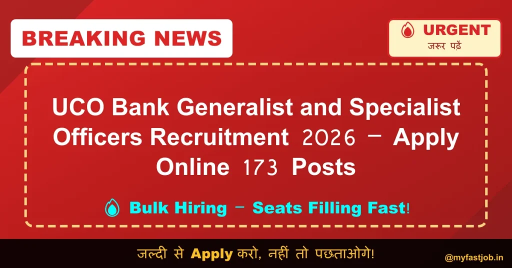 UCO Bank Generalist and Specialist Officers Recruitment 2026 – Apply Online 173 Posts